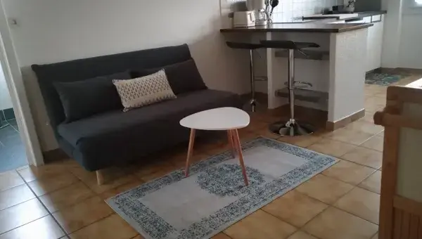 Cuisine américaine équipée (réfrigérateur-congélateur, Lave-vaisselle, plaques vitro céramique, micro-ondes). Canapé convertible en 140, table modulable, télévision écran plat (prises télé dans le séjour et les 2 chambres), Fibre installée. Une chambre avec un 1 lit pour 2 personnes. Une chambre avec 2 lits en 90 (empilables si on veut se servir de la pièce comme salon ou bureau (lit parapluie bébé à disposition). Salle d’eau et buanderie avec Lave-linge et sèche-linge. Radiateurs électriques et ventilateurs de plafond dans chaque pièce. Terrasse au pied de l’escalier d’accès. linge de lit fourni+ tapis de sol +1 torchon+1 essuie main. kit linge toilette (1 drap de bain+1serviette de toilette) disponible : 5 euros