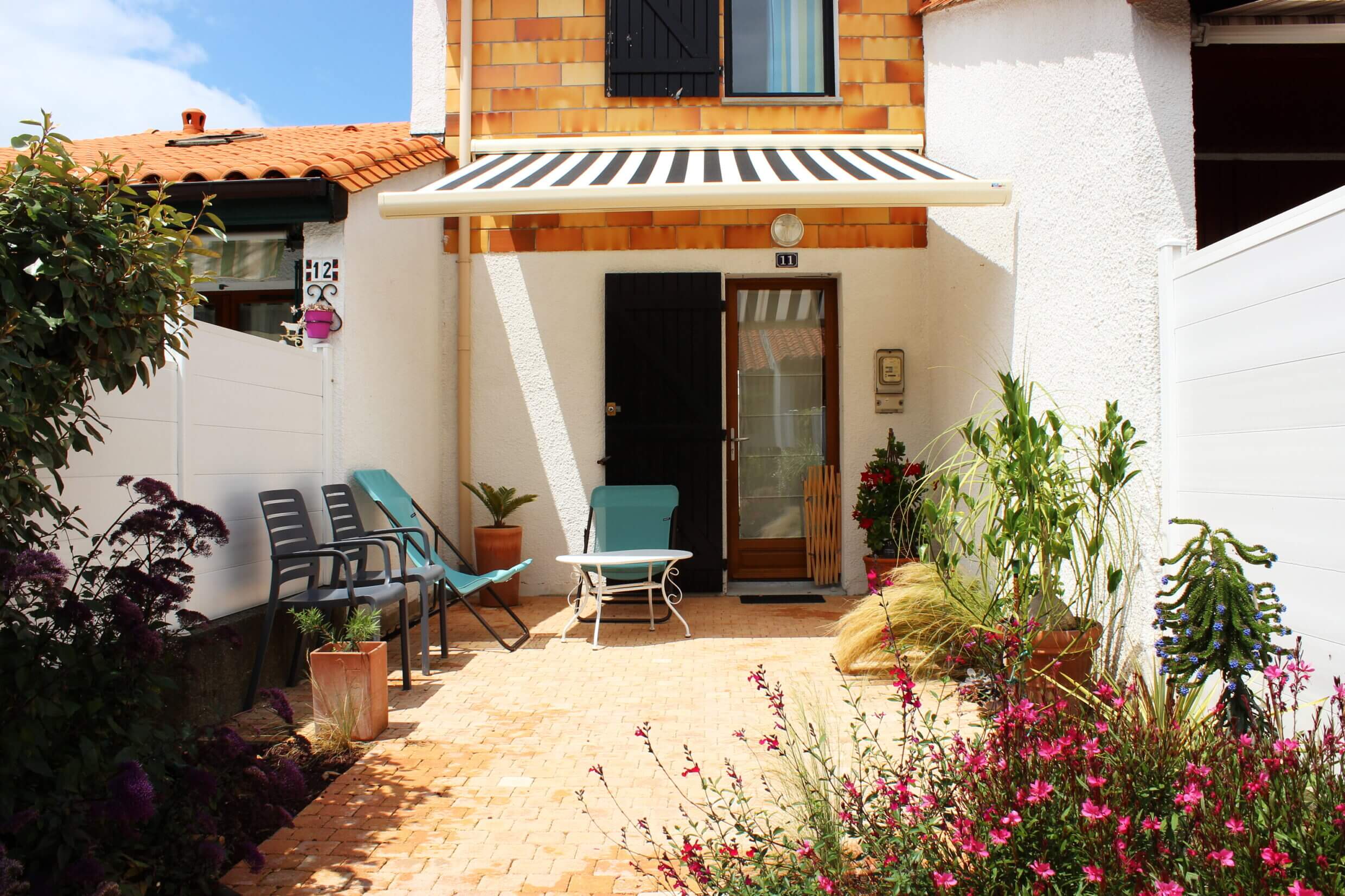 A Bidart , limite Biarritz, maison à 300m à pied de la plage du Pavillon Royal (accès par chemin piétonnier). Dans un hameau de maisons mitoyennes, sécurisé, situé le long du golf d’Ilbarritz. Place de parking privée. La maison possède 2 jardinets avec table, chaises, fauteuils, transats, parasol et barbecue.