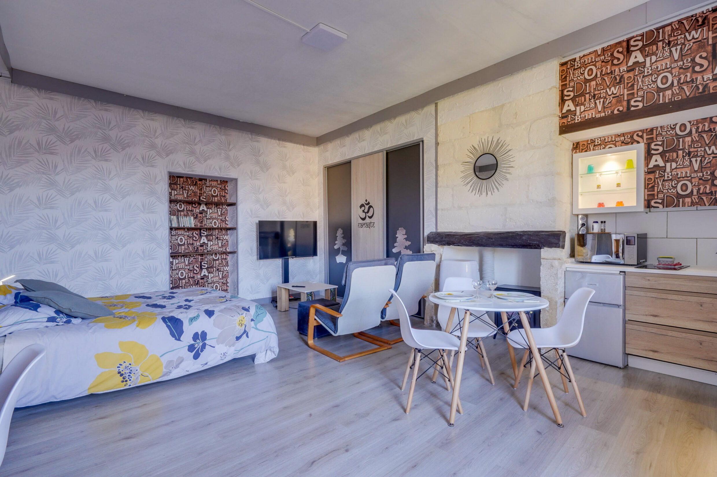 Bienvenue dans notre studio situé au premier étage d’une maison de ville au cœur de Pauillac avec vue sur cour intérieur. Vous serez accueillis dans un grand studio bien équipé : – petite cuisine – coin salon, équipé d’une télévision avec Netflix. Une cour intérieure commune à 3 appartements est équipée de mobilier de jardin et barbecue. Nous mettons également à votre disposition une salle de sport avec un sauna et deux vélos électriques pour explorer les environs à votre rythme.