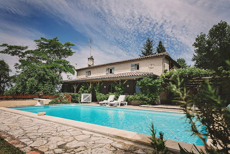 Belle maison de vacances dans les régions viticoles de Duras. Près du bourg de Duras, la maison se trouve entourée de vignes et de vergers de pruniers. Avec une piscine privée, il y a de la place pour 10-12 personnes.