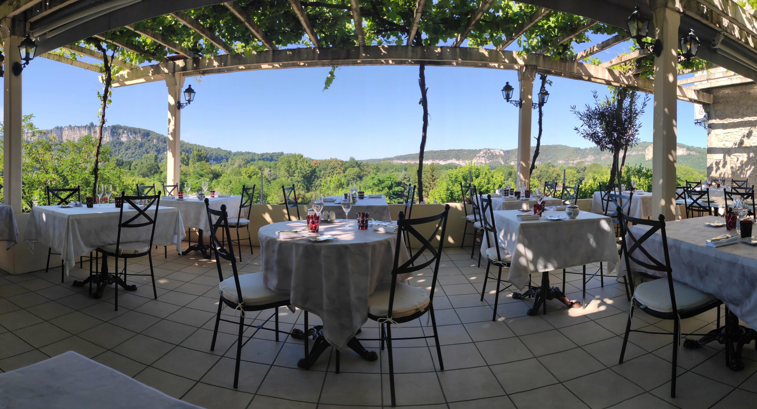 Tous les produits, de qualité, proviennent soit cultivés avec passion dans notre jardin, soit des producteurs locaux. Sous la treille de la terrasse, en surplomb sur la vallée de la Dordogne ou dans les salles voûtées de cette ancienne résidence d’été des Evêques de Tulle, le chef honore et met en scène la cuisine quercynoise avec soin et poésie. Son soufflé glacé aux noix du pays et sa selle d’agneau du Quercy farci au pistou méritent vraiment un détour.