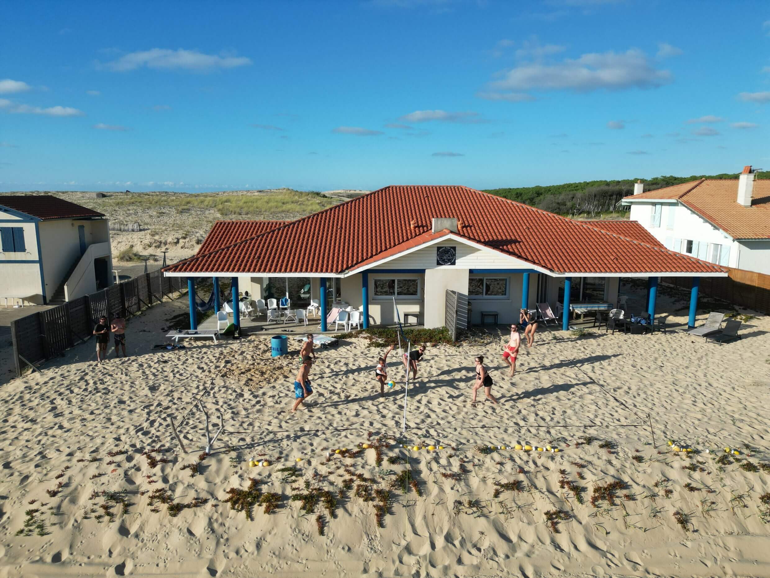 St-Girons Surf House est un surfcamp unique sur la dune, à 50m de la plage, dans les Landes. Elle propose un package à la semaine avec logement, cours de surf, petit-déjeuner et bien plus encore ! 2 villas mitoyennes accueillent au maximum 16 personnes. Vous dormirez dans des chambres partagées ou privées, tout près du spot de surf. Les maisons disposent de 2 cuisines tout équipées. Vous pourrez aussi profiter de la table de billard, terrasses couvertes avec salon de jardin, hamacs, parking privé et Wifi. Des cours de surf « tous niveaux » sont organisés par Bernardo. Le matériel de surf reste à votre disposition tout au long du séjour.