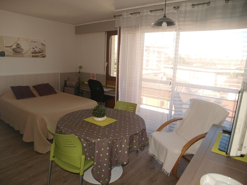 Ce studio meublé en centre ville, situé au 3ème étage avec ascenseur, est à 100 mètres des Thermes et à proximité des berges de l’Adour où vous pourrez profiter de promenades ombragées.