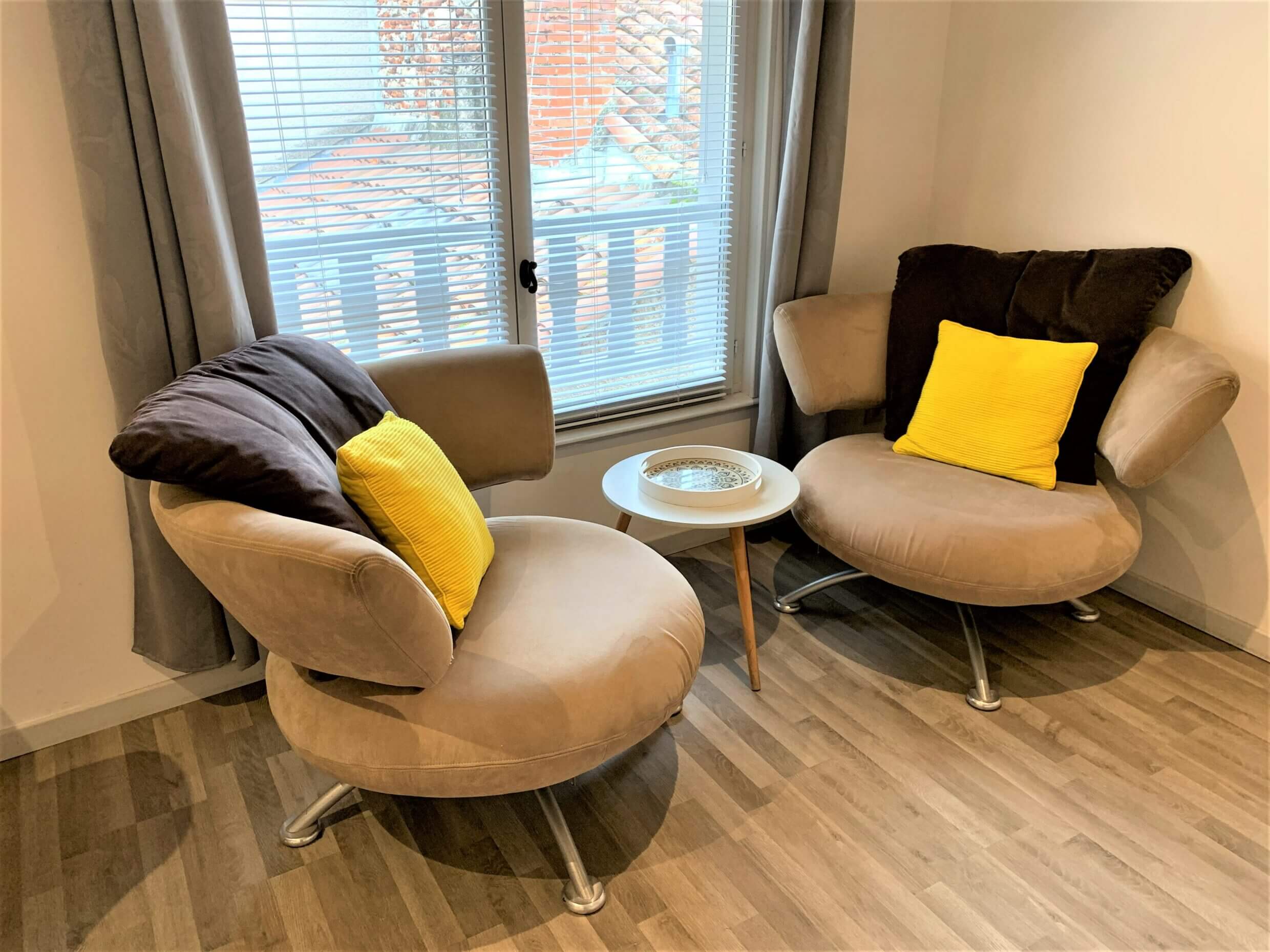 Kitchenette équipée avec plaques de cuisson, micro-onde, machine Nespresso, bouilloire et toute la vaisselle nécessaire pour votre séjour.