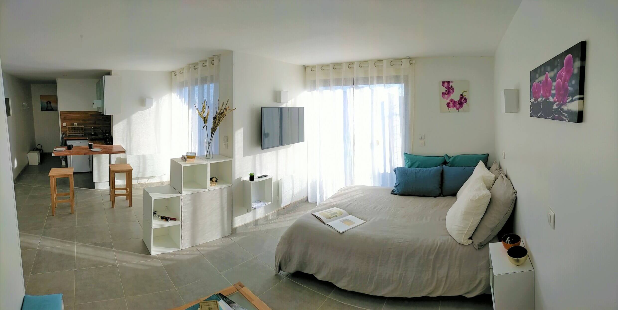 Sur les premières hauteurs de Auzeville, entre Ramonville et Castanet, studio lumineux de 32m², indépendant avec petit jardin. Environnement très calme, proche des transports en commun, des commerces, de la rocade mais également des chemins entre champs et petits bois.