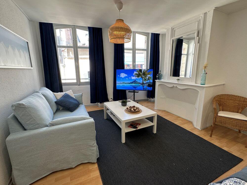 Situé au cœur du centre historique de Dax, dans une charmante rue piétonne, L’Écrin est un appartement 3*, de 39 m² niché au 2ème étage sans ascenseur, d’un immeuble de caractère. Son style raffiné, mêlant bois clair, blanc lumineux et touches de bleu, crée une atmosphère élégante et apaisante. La spacieuse pièce de vie réunit un salon convivial et un coin nuit confortable, tandis que la cuisine séparée entièrement équipée assure praticité et confort au quotidien.