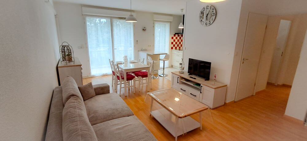 Séjour : Canapé 3 places, télévision smart TV 80 cm, table basse,