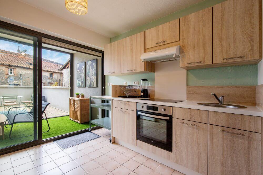 * Cuisine : Entièrement équipée (four, plaque de cuisson, micro-ondes, lave-vaisselle, etc.).