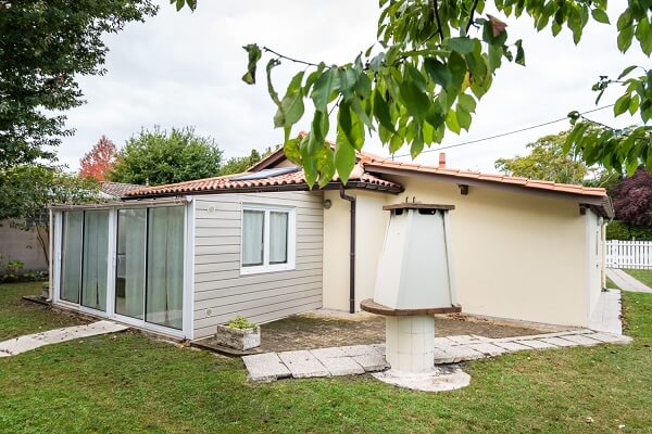 Une grande terrasse dans un jardin arboré de 800 m2 vous permettra de partager des moments agréables en famille ou entre amis autour du barbecue.