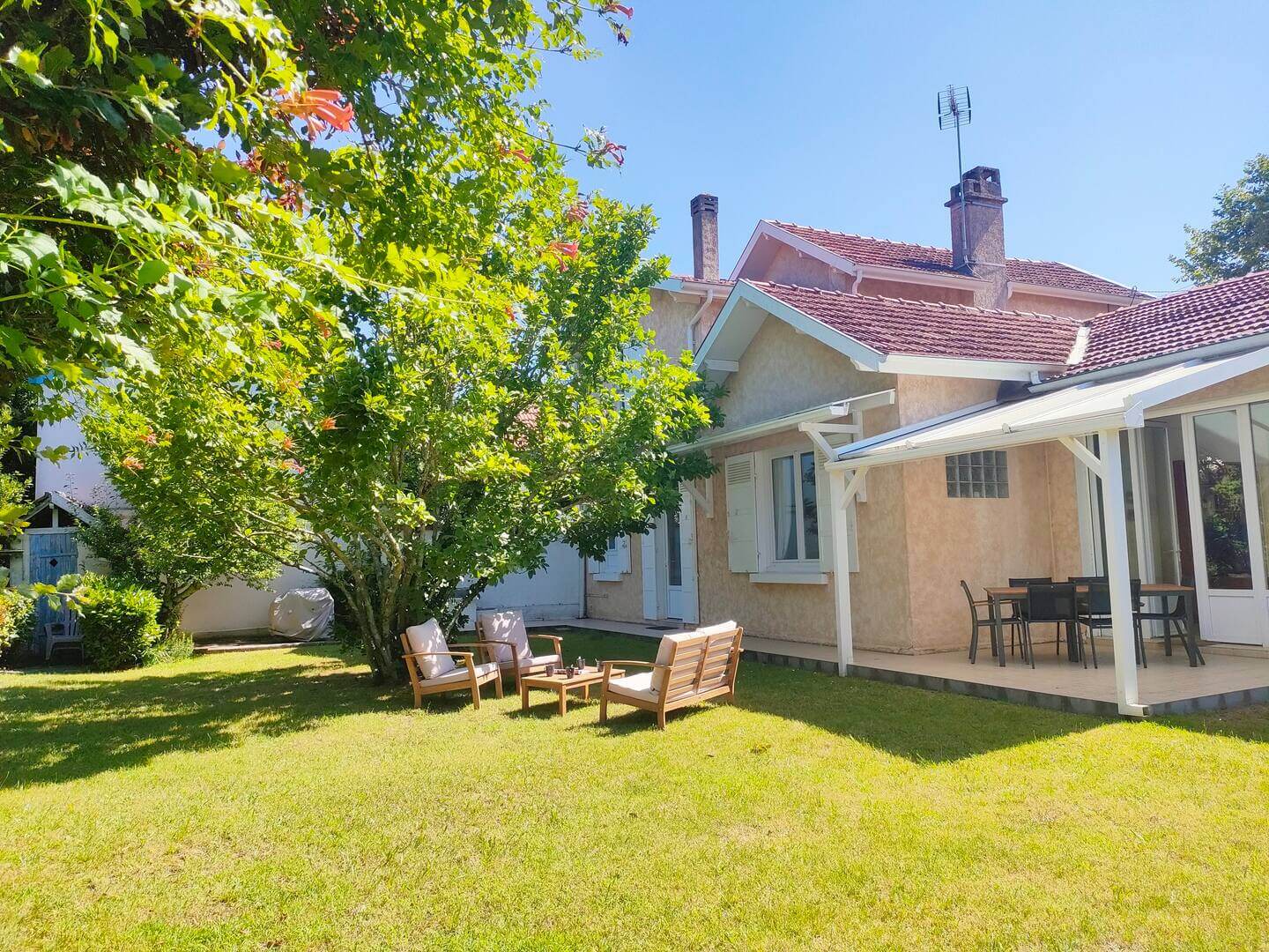 Très belle villa située à 200m des plages et des rues piétonnes vous amenant directement au marché journalier. Vous profiterez d’un salon traversant, d’une cuisine équipée, d’un coin repas avec un accès direct vers l’extérieur aménagé d’un salon salon de jardin pour des moments de convivialité. chambres dont 2 en rez de chaussée et 2 à l’étage possédant chacune leur salle de bain.