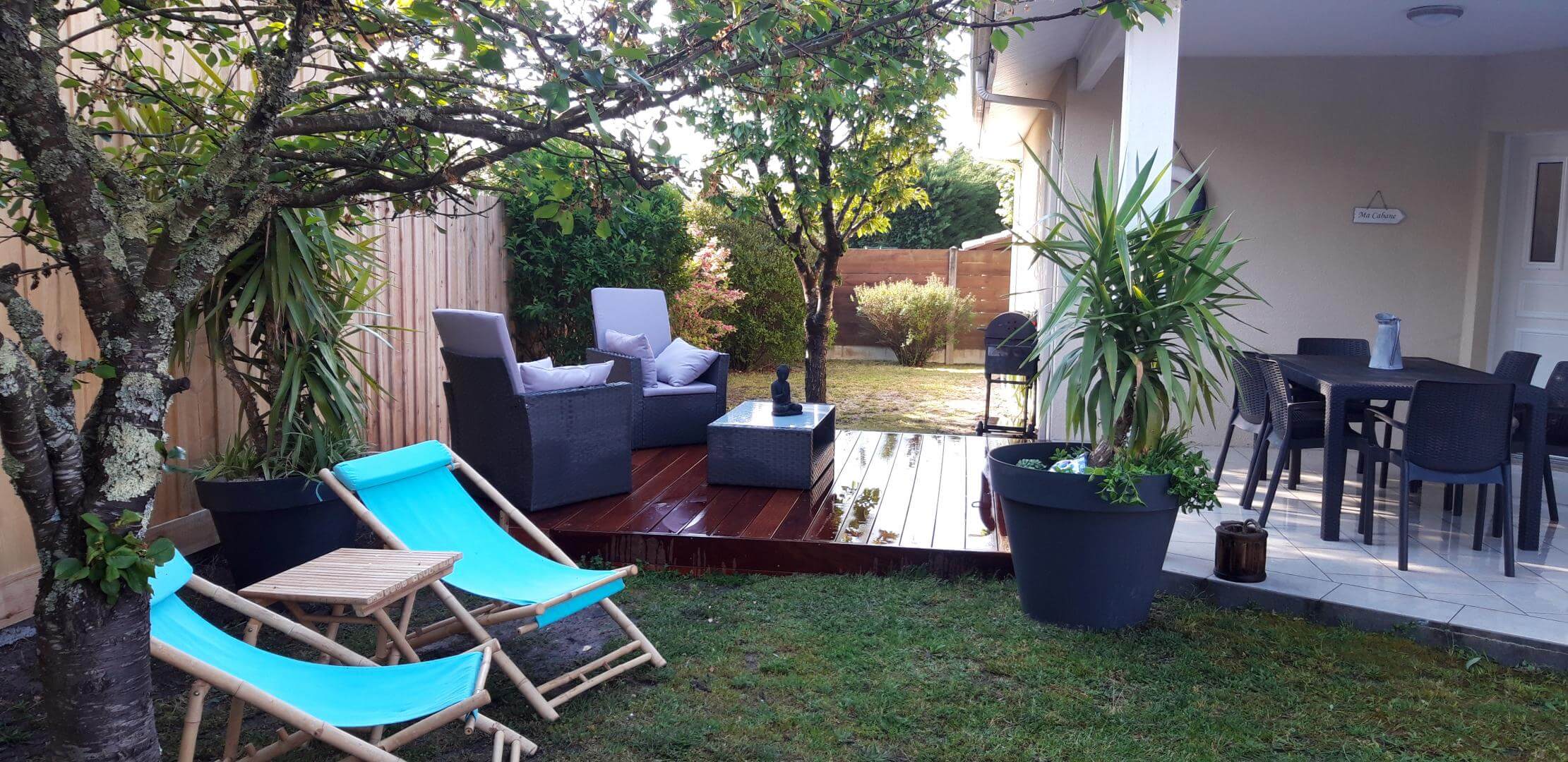 bicyclettes sur les nombreuses pistes cyclables. Cette maison neuve de 70 m² dispose d’un jardin privatif, d’une terrasse couverte. Parking sur la propriété. Vélos à disposition. Draps et linge fournis.