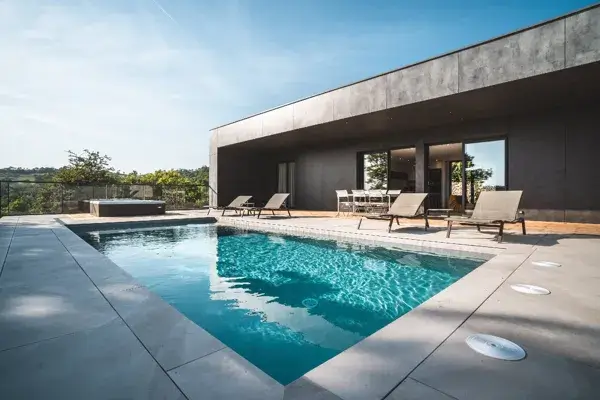 Jardin, barbecue, piscine privée chauffée (de juin à septembre) et spa privé à chaque villa.