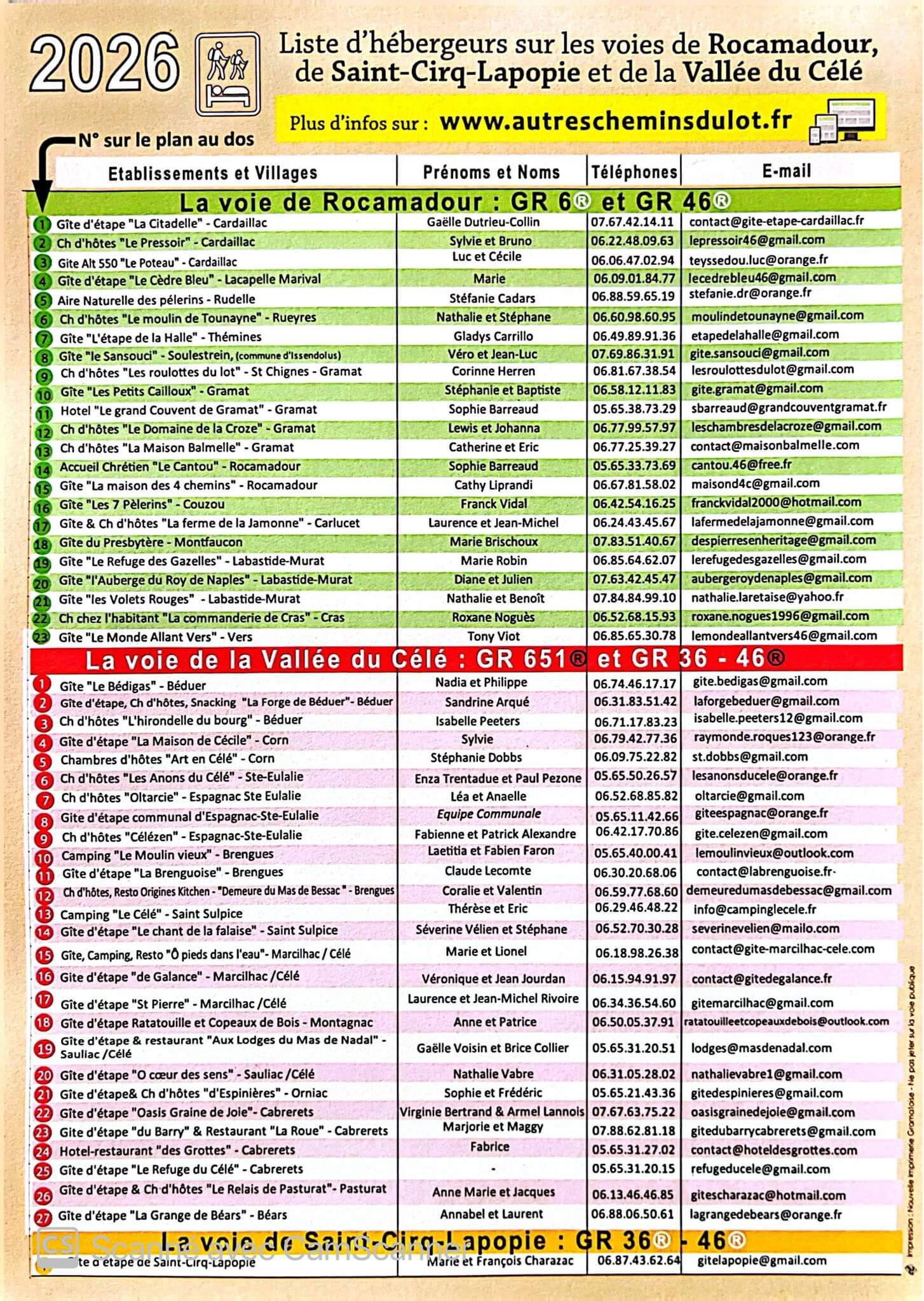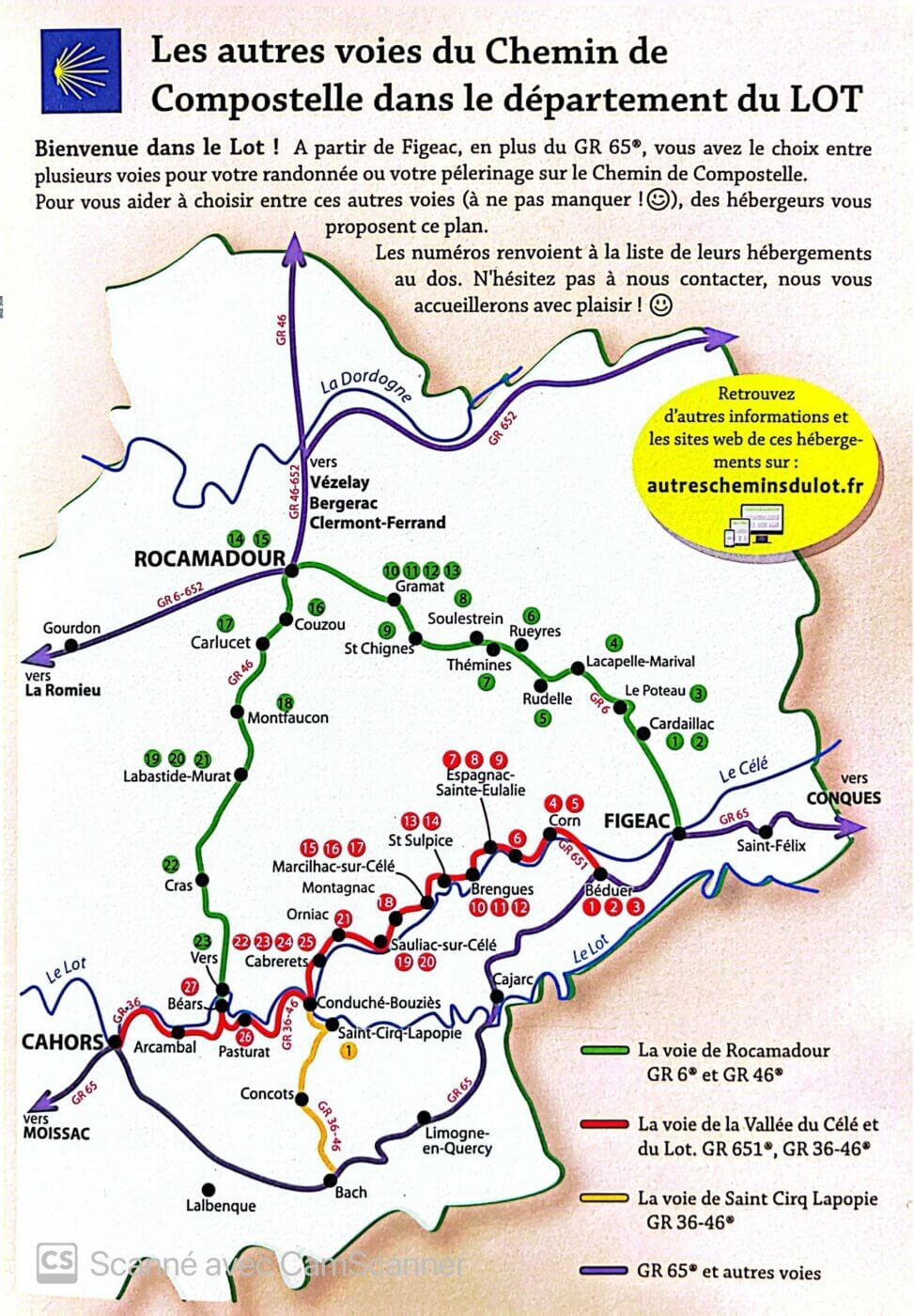 Des hébergeurs sur les voies du Célé et de Rocamadour se sont regroupés et éditent chaque année un flyer présentant les possibilités d’hébergements sur ces itinéraires.