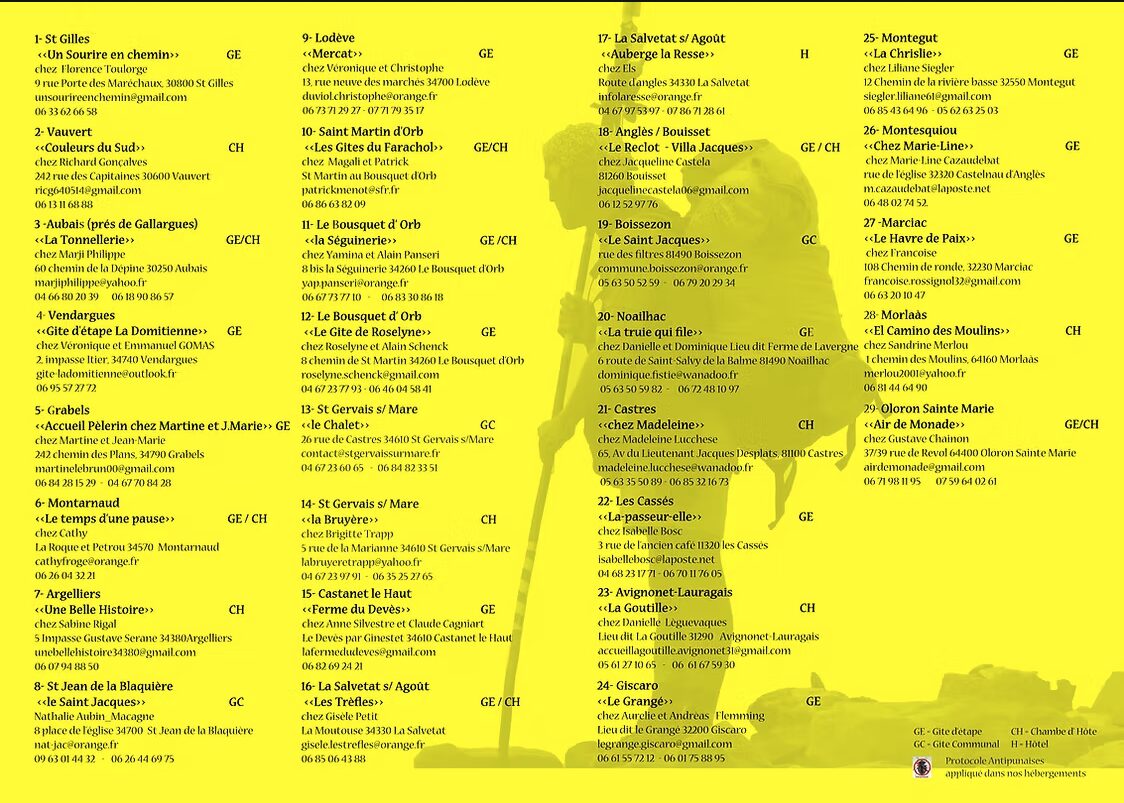 Accueil Médiathèque Liste des hébergeurs de l’association Les Haltes pèlerines du chemin d’Arles de Rome à Compostelle – Saison 2026
